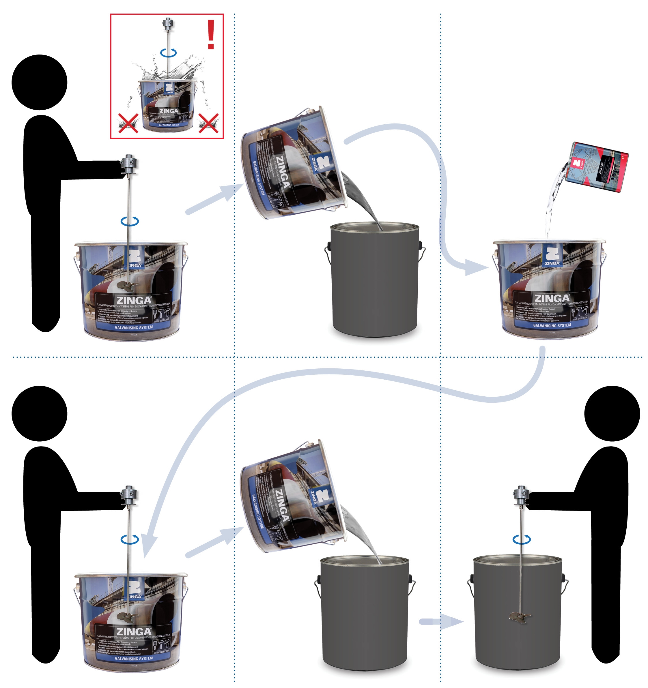 Le ZINGA doit être mélangé en utilisant des instruments mécaniques.